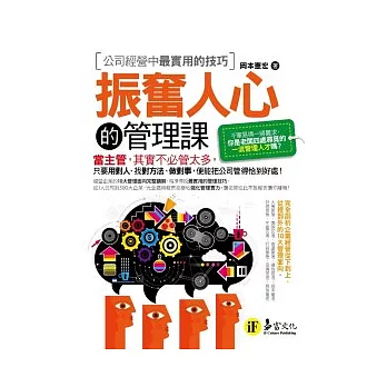 《振奮人心的管理課企業經營最實用的技巧》針對經營企業的10大管理面向完整講解,精準傳授最實用的管理技巧,從1人公司到500大企業,完全適用。讓你輕而易舉地強化管理實力,老闆從此不敢輕言讓你離職!